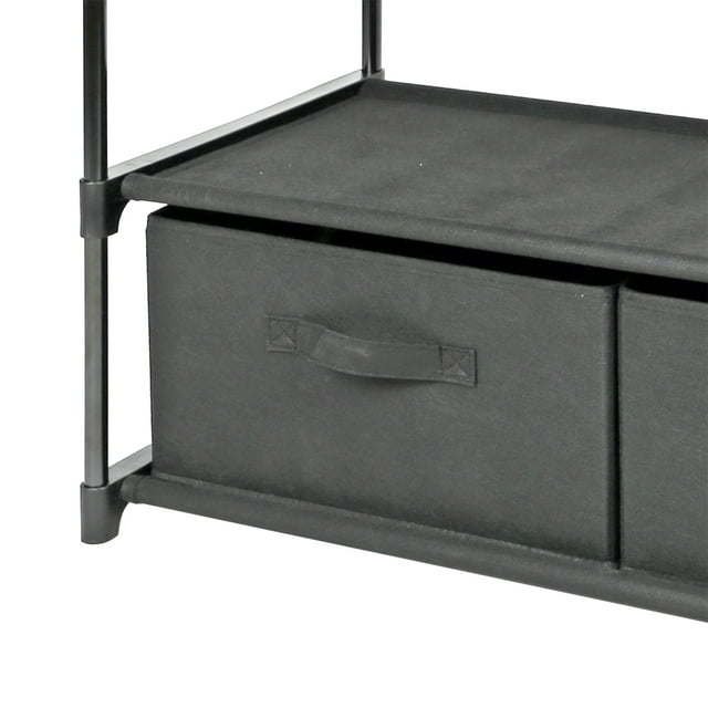 4 Shelf Closet Organizer with 2 Bins, Black, Metal Frame, Adult and Child